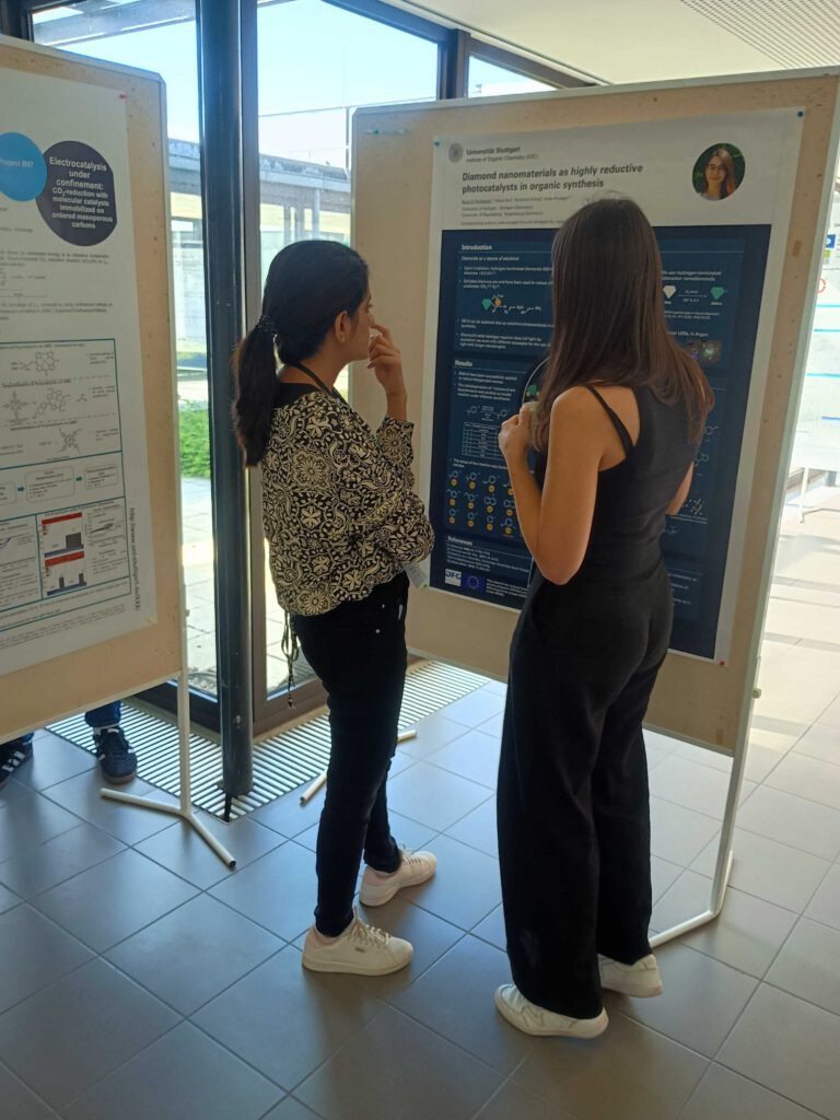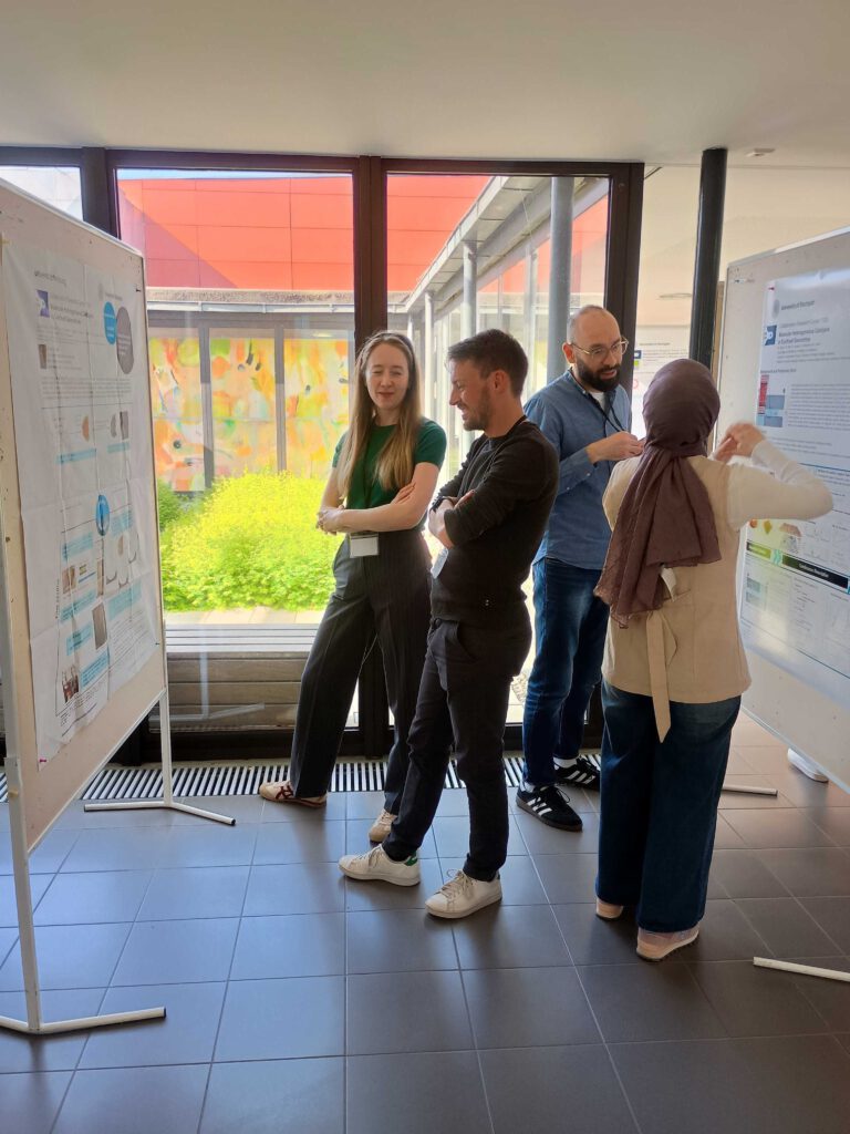 During the poster sessions on the first two days, our doctoral researchers presented their current work and received valuable feedback from peers and professors alike. In addition, the CRC 1333 INF team organized daily exhibitions during the coffee breaks, highlighting the FAIRSynthesis, FAIRVibSpec and Thermodynamic parameter estimation of linker and catalyst effects in pore-immobilized systems.